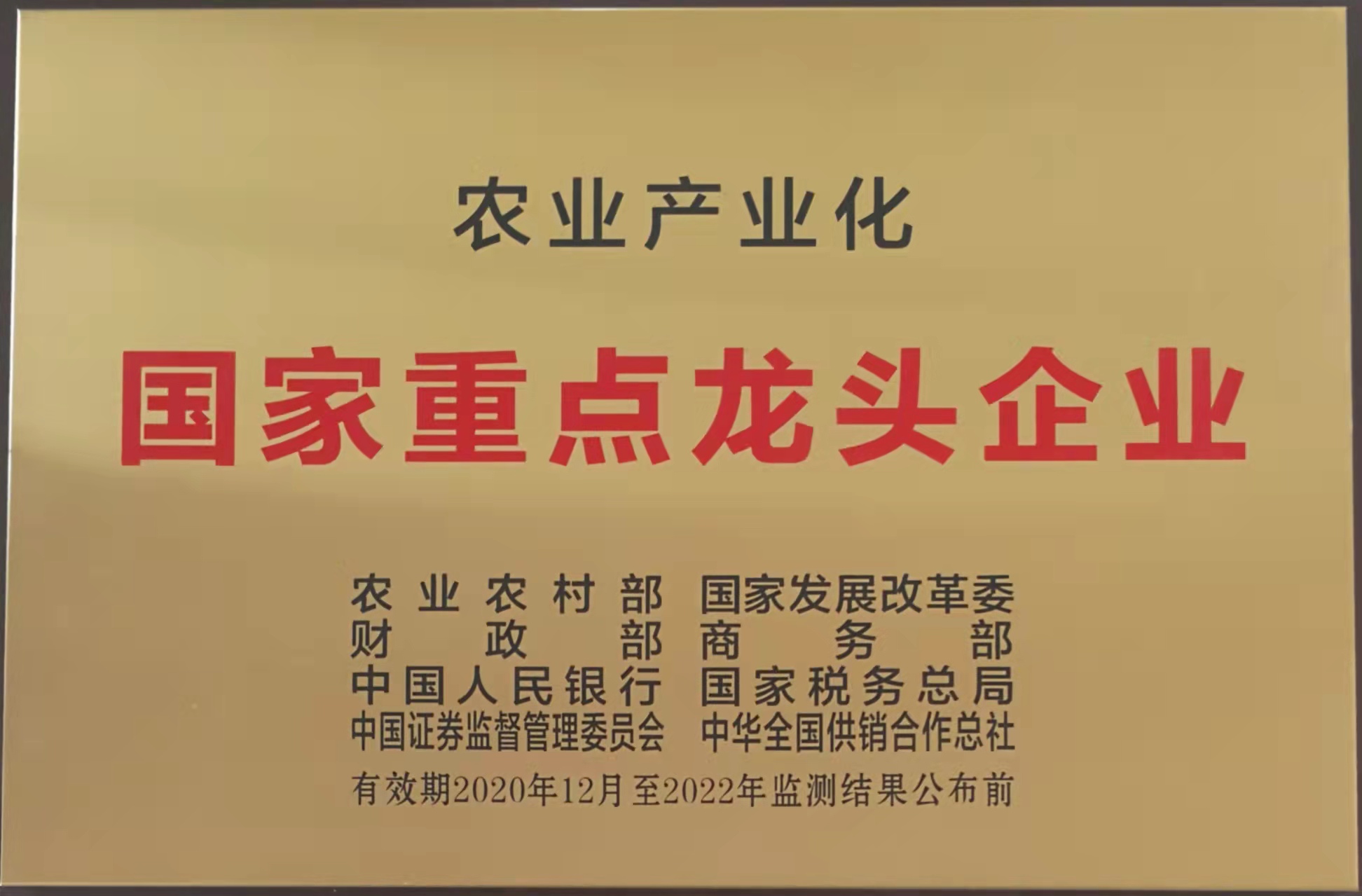 农业产业化国家重点龙头企业(有效期至2022年)